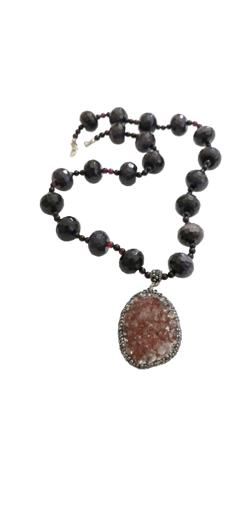 Ametist kolye ucu ve yıldız taşı ile tamamen doğaltaşlardan yapılmıştır.